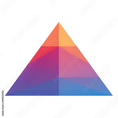 A colorful geometric pyramid with gradient hues on a white background