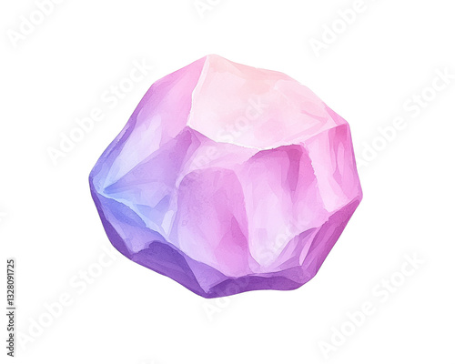 A colorful, geometric rock with soft edges and a gradient of pink and blue hues.
