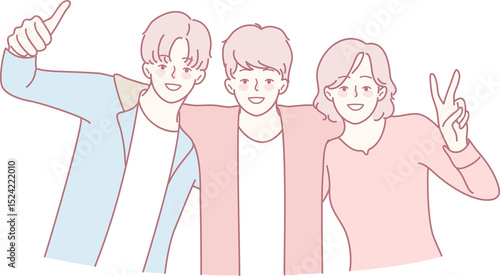 cheerful, playful, joyful, smiling, friends, friendship, pose, joy, happy, lively, group, celebration, colourful, smile, fun, team, smile, youthful, vibrant, illustration, togetherness, happiness, play, social, positive, youth, outdoors, emotion, interaction, moment, illustrative, casual attire, oneness, fashion, together, graphic, trendy, art, bonding, support, communication, connection, lifestyle, dynamic, energy, modern