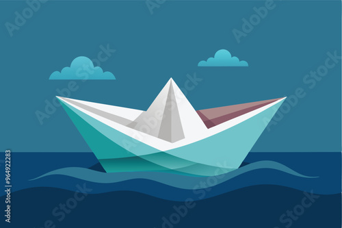 boat, paper, water, ocean, sea, wave, cloud, sky, blue, calm, floating, craft, origami, calmness, serene, afternoon, nature, landscape, summer, playful, childhood, leisure, transportation, liquid, adventure, colourful, scenery, hand-made, creative, environment, outdoors, graphic, cartoon, isolated, design, simplicity, art, minimalism, peaceful, escape, fun, hobby, nautical, craftsmanship, wind, movement, visual, coastal