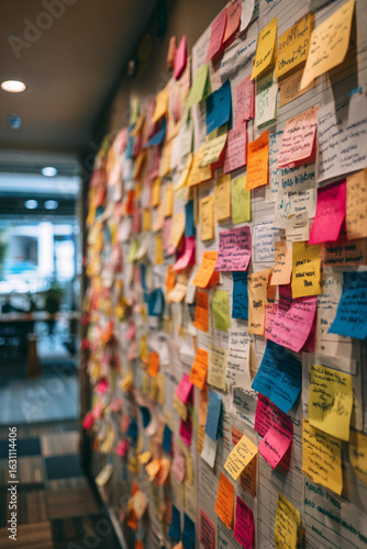 A colorful wall full of sticky notes and to-do lists in a coworking hub A team is revising their roadmap and assigning new tasks The atmosphere is serious, Generative AI