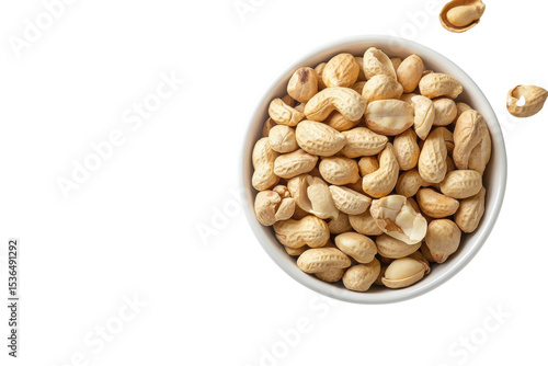A comforting bowl of roasted peanuts ready for snacking on a dark night with clean overhead studio isolated on transparent background. Generative Ai.