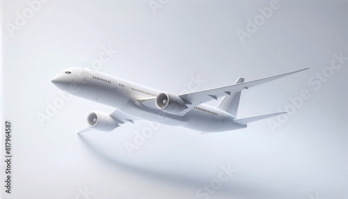 A commercial airplane in flight, depicted on a plain white background to emphasize the aircraft
