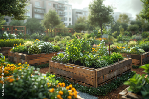 A community garden buzzing with activity, where individuals of all ages come together to cultivate a shared green space, fostering a sense of unity and environmental responsibility. Generative Ai.