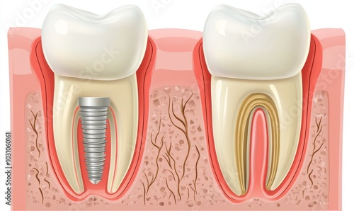 implant, dental, prosthesis, treatment, denture, dentistry, teeth, molar, dent, illustration, medicine, model, medicals, jaw, clinic, dentist, laboratory, artificial, equipment, care, surgery, crown, enamel, root, ceramic, human, titanium, gum, healthy, render, comparison, natural