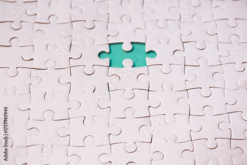 puzzle, jigsaw, missing, piece, white, completion, concept, solution, challenge, game, background, incomplete, problem, connection, detail, solving, pattern, texture, element, unfinished, together, part, shape, design, teamwork, fitting, blank, surface, plain, riddle, square, connected, join, linking, match, nobody, task, close, up, frame, abstract, recreation, teal, simple, tabletop, arrangement, leisure, activity