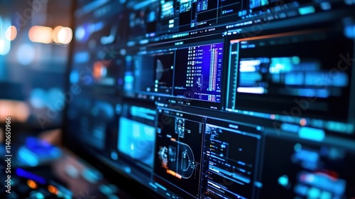 high technology, screen, display, chart, datum, analysis, monitoring, system, graphic, bar, element, blue, tone, futuristic, technology, ambience, advanced, information, dense, room, laboratory, interior, location, unclear, vague, setting, scene, interface, computer, digital, visual, representation, indicator, panel, matrix, dashboard, statistic, network