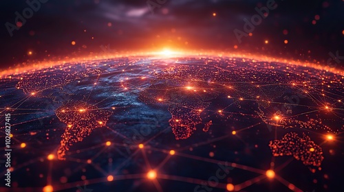 A concept of global network connections, focusing on communication technology and data exchanges worldwide.