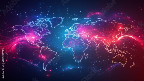 ai, map, datum, light, node, continent, holographic, design, neon, futuristic, aglow, tech, visualisation, mapping, advanced, global, glowing, layer, cosmic