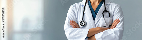 A confident medical professional in a white coat, symbolizing healthcare, expertise, and patient care in a clinical environment.