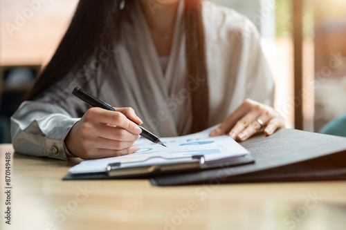 business, businesswoman, woman, female, asian, young adult, adult, manager, ceo, boss, beautiful, attractive, employee, work, job, copy space, one person, photo, well-dressed, entrepreneur, occupation, indoor, office, workplace, company, corporate, modern, cafes, lounge, sitting, cropped, closeup, signs, reviewing, examine, reading, writing, note, pen, paper, report, document, canvasses, checking, sharpened, desk, table, paperwork