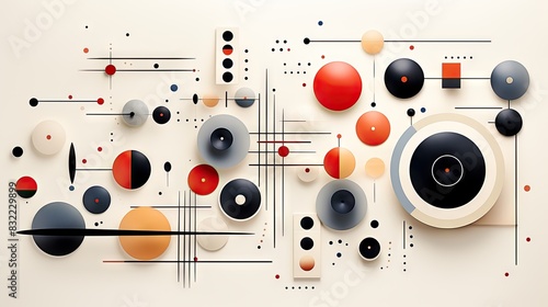 abstract, geometric, modern, art, composition, red, beige, black, contemporary, shape, design, simplicity, decoration, circle, line, accent, minimalist, decor, pattern, background, texture, visual, interior, stylish, elegance, creative, flat, harmony, balance, artistic, arrangement, wallpainting, conceptual, interior design, three-dimensional, sophistication, focal point, innovation, bauhaus, contrast, symmetry, aesthetic, mounting