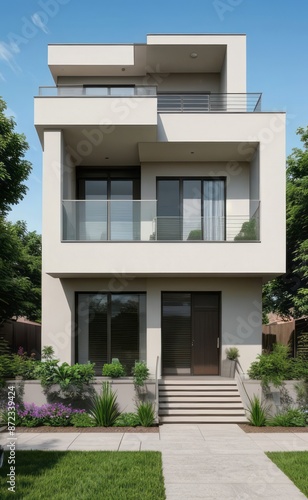 A Contemporary Dwelling with Stylish Architecture, Beautiful Exterior Design, and a Serene Garden Setting. Perfect Family Home in a Residential Neighborhood, Featuring Thoughtful Construction