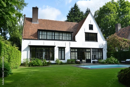 house, garden, suburban, architecture, design, modern, window, greenery, lawn, sunny, residential, peaceful, landscape, backyard, tree, pool, relaxing, family, home, nature, summer, bright, property, care, landscaping, environment, calmness, sunlight, blue, sky, real, estate, living, contemporary, suppressing, attracted, cosy, scenery, space, comfort, style, feature, bungalow, building, grass, roof, residence, village