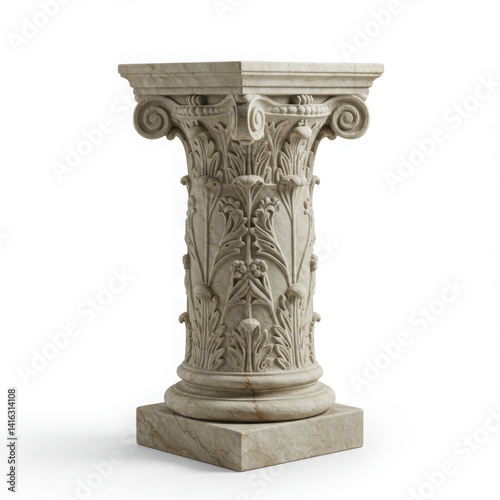 column, pedestal, corinthian, floral, carving, footed, square, white, isolated, architecture, stone, design, decorative, element, art, classic, style, ancient, detail, scroll, ornate, pattern, structure, support, display, plinth, capital, scroll, acanthus, leaf