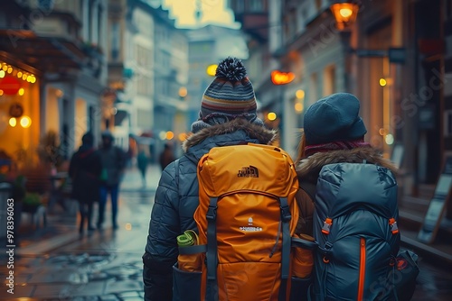 couple, backpack, street, travel, city, rain, urban, exploration, adventure, lifestyle, journey, scenery, architecture, tour tourism, wanderlust, friendship, togetherness, fashion, weather, leisure, activity, environment, mood, evening, light, cosy, culture, people, photo, path, nature, relaxation, enjoyment, fun, discovery, moment, companionship, sight, ambience, atmosphere, travelog, experience, streetscape, destination