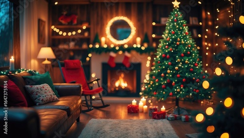 cosy, living room, christmas, holiday, festive, decoration, lit, christmas tree, fireplace, candle, warm, seasonal, celebration, interior, home decor, family room, jolly, inviting, traditional, decorative lighting, nobody