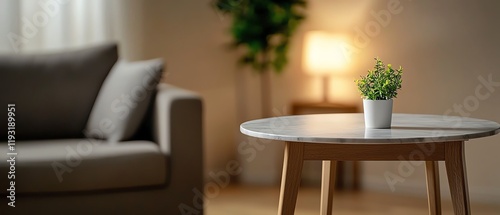 A cozy living room scene featuring a plant on a table next to a sofa, perfect for home decor inspiration.
