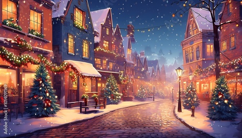 christmas, street, winter, snow, dusk, pixelated, cobbled, festive, decoration, tree, light, quaint, holiday, architecture, evening, atmosphere, charming, shop, warmth, cosy, illuminated, gift, red, green, tradition, celebration, local, scene, peaceful, snowflake, lantern, stroll, hospitality, ambience, cheer, gathering, winterly, joy, neighbourhood, nostalgia, seasonal, picturesque, serene, inviting, town, building, generative, ai