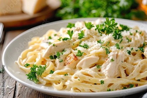 chicken, alfredo, pasta, creamy, fettuccine, garnish, parsley, parmesan, italian, meal, comfort, delicious, savoury, hearty, food, dish, eatery, epicure, culinary, receipe, plate, dinner, cheesy, decadent, fresh, cooking, indulgent, parmesan cheese, herb, food photography, italian cuisine, homemade, flavorful, dining, appetising, culinary arts, tasty