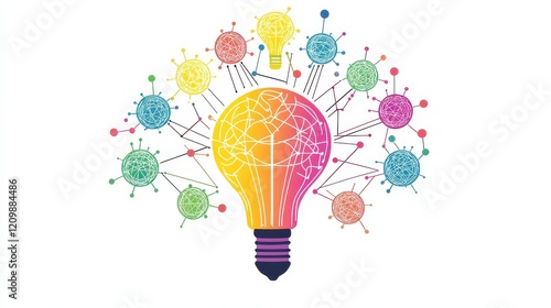 a creative mind map chart clipart, brainstorming process element, colorful connected nodes, flat design, isolated on white background