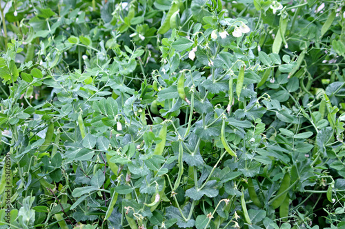 A Crop of Pea Pods and Blossom on a Large Plant.