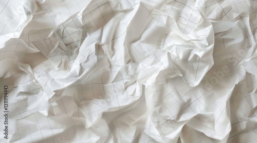 a, crumpled, white, paper, with, delicate, grid, overlay, captured, in, intricate, detail, the, fold, and, crease, be, highlighted, realistic, texture, enhanced, by, soft, lighting