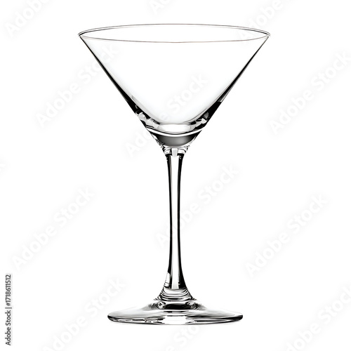 A crystal - clear martini glass stands elegantly against a solid transparent background its sleek lines embodying sophisticated simplicity