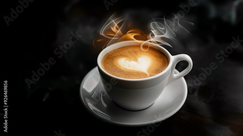 A cup of steaming hot coffee with a heart-shaped foam