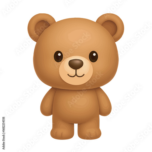 A cute 2D teddy bear character with soft brown fur, big round eyes, and a friendly smile, standing upright with a simple and charming design.