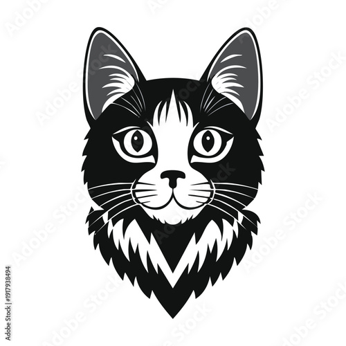 A cute black feline silhouette and vector illustration of a cat with a heart symbol represents a funny cartoon pet design and a domestic kitty drawing showing love for an animal
