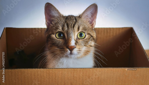 A cute cat inside a box