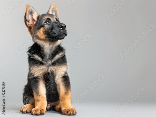 A cute German Shepherd puppy sitting on a solid pa 106 dog, animal, pet, shepherd, german, isolated, canine, white, puppy, german shepherd, portrait, cute, mammal, breed, brown, studio, domestic, pur