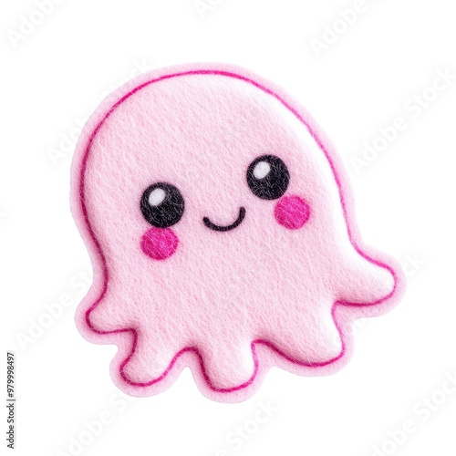 A cute pink octopus plush with smiling eyes, perfect for children's decor or playful designs. Adorable and fun., isolated on a transparent background.
