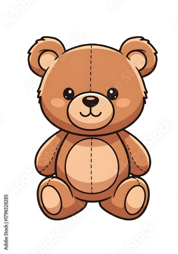 A cute vector illustration of a brown teddy bear with stitched details, drawn in a soft cartoon style. Perfect for children’s designs, stickers, nursery decorations, and educational materials.