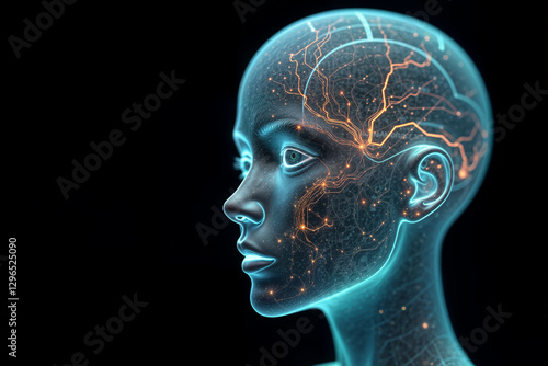 artificial intelligence, ai, cyborg, android, futuristic, brain, cybernetic, digital, circuit, cyber, computer, virtual, technology, tech, consciousness, innovation, smart, evolution, intellect, thought, concept, mind, abstract, science, human, interaction, connected, robot, information, glowing, face, design, cyberspace, cognition, future