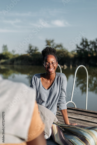 couple, black, afro, african american, together, talking, sunset, sunlight, sun, summer, smiling, sitting, pier, picnic, outdoors, nature, love, lifestyle, leisure, lake, happy, happiness, dock, day, man, male, person, people, adult, adult, 20s, young adult, young adult, young person, grown-up, woman, girl, female