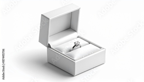 A dazzling diamond engagement ring presented in a pristine white velvet box, symbolizing eternal commitment and the start of a romantic journey together, ready for a heartfelt proposal