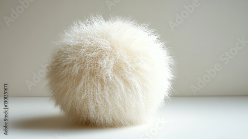 A delicate cream faux fur ball with soft, airy fibers, placed on white