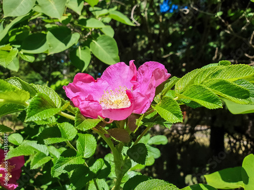 A delicate flower of wild rose. Yaroslavl. Beautiful summer day.
