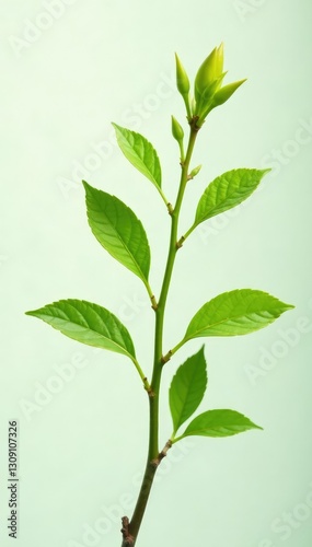 A delicate isolated branch with small leaves and stems, green, tree, isolated