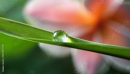 a delicate pearl a close up captures a singular water droplet perched atop a slender green leaf