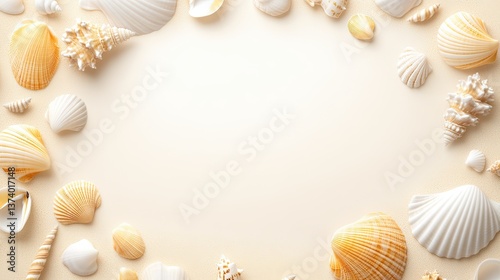 A delicate shell border with intricate, sandy textures and soft hues, perfect for beach-themed invitations, coastal dcor, or ocean-inspired designs.