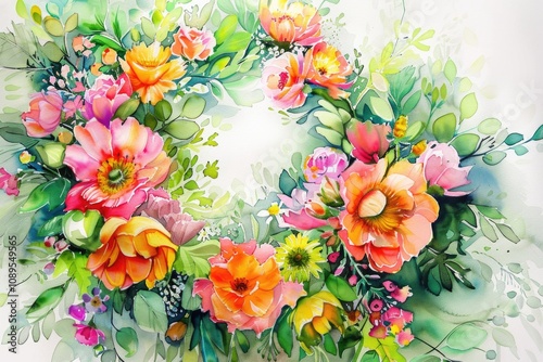 A delicate watercolor painting of a floral wreath, perfect for decorating and embellishing various designs