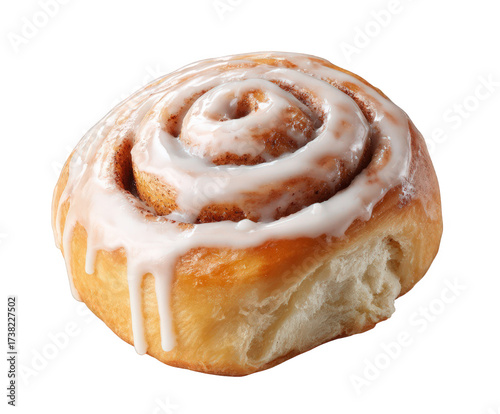 A delicious cinnamon roll with white icing drizzled on top, isolated on a transparent background, perfect for a sweet breakfast or dessert treat