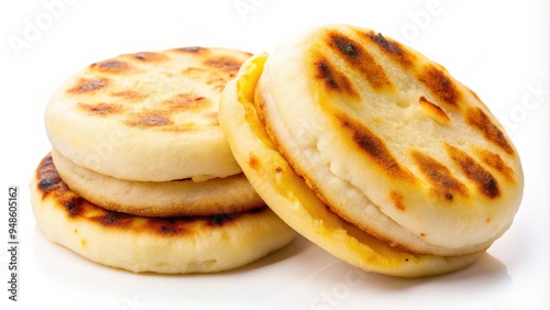 A delicious stock photo of traditional Colombian arepas, isolated on a white background, colombian, arepas, food