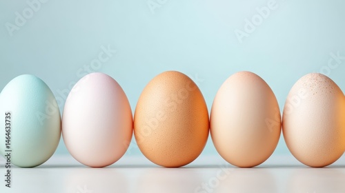 A delightful arrangement of five colorful eggs set against a soft pastel background, symbolizing diversity, creativity, and the joy of Easter celebrations.