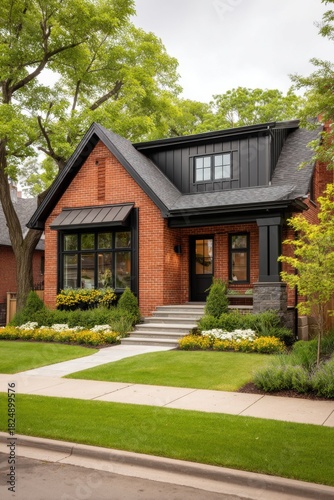 brick, house, modern, architecture, suburban, home, landscaping, afternoon, light, green, plant, suppressing, attracted, welcoming, entrance, peaceful, neighbourhood, exterior, design, residential, area, front, yard, garden, flower, improvement, space, family, contemporary, style, step, facades, warm, tone, relaxing, environment, attractive, nature, property, new, construction, cosy, atmosphere, charming, urban, living, residence, inviting