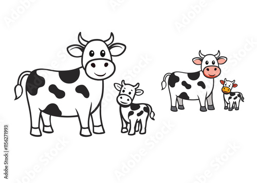animal, easy, family, isolated, nature, illustration, love, education, children, couple, happy, mother's day, sticker, character, silhouette, painting, vignetting, cow, doodle, holiday, mother, funny, hand-drawn, black-and-white, mammal, fauna, artwork, kindergarten, parenthood, line art, toddler, hayrick, outline, farm animal, activity, adorable, bull calf, childish, clip art, contour, little, picture