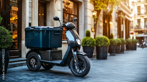 sustainable, delivery, scooter, urban, street, greenery, afternoon, light, local, shop, logistic, electric, vehicle, city, transport, potted, plant, commercial, area, green, initiative, service, road, streetscape, mobility, transportation, design, city landscape, environmentally, conscious, modern, infrastructure, solution, innovative, environment, solution, responsible, neighbourhood, business, life, efficiency, bicycle, small, eco, innovation, cycling, living, planning, performance